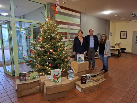 Für unsere Schulbücherei hat der Rotary Club Elementarbildung uns passend zur Weihnachtszeit eine große Bücherspende übergeben. Bernd Grigat überreichte uns stellvertretend für den Rotary Club die Spende.