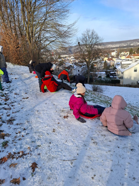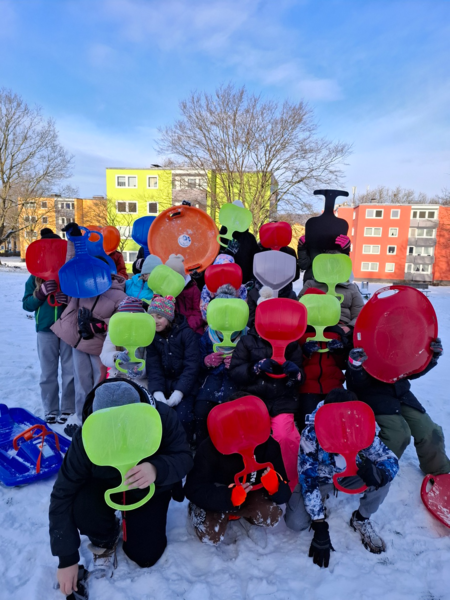 Frau Schug und Frau Schleuß nutzen den Schnee für alternativen Sportunterricht...